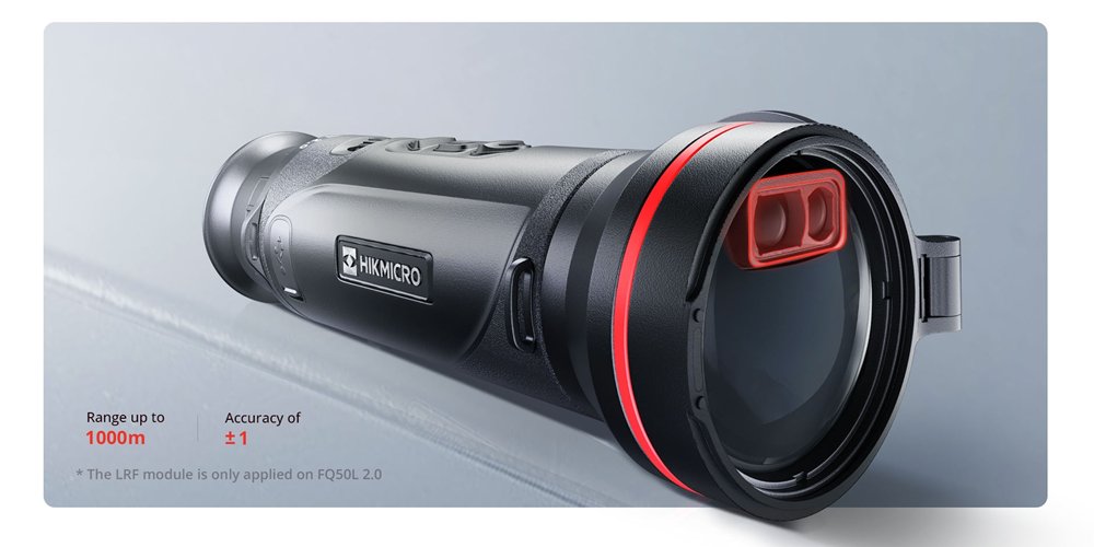 FQ50Lでは、シンプルな円筒形デザインを損なうことなく、レンズユニット内にレーザーレンジファインダーモジュールを組み込みました。最大1,000m先までの距離を正確に測定でき、さらに水平距離の表示も可能です。