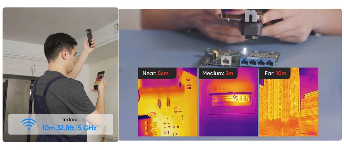 高解像のサーマルカメラに加えて可視光カメラを搭載しており、これらを組み合わせて5つのイメージモードと8つのカラーパレットに対応。用途や現場に合わせてお好みのモードに切り替えられます。