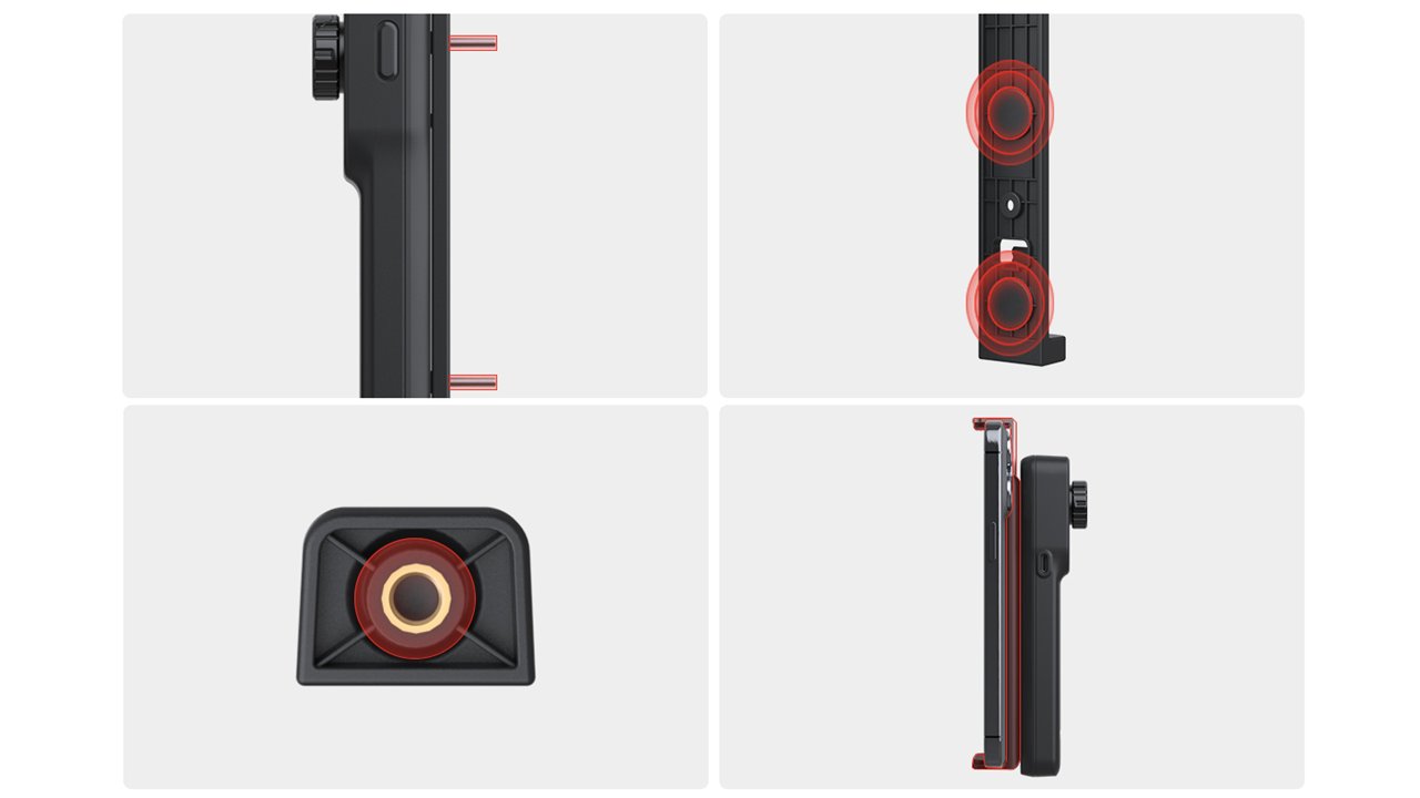 携帯性に優れ、人間工学に基づいたデザインを採用しています。また、マウントホルダー2種類が標準で付属しており、磁石、壁、三脚、スマートフォンに固定できます。