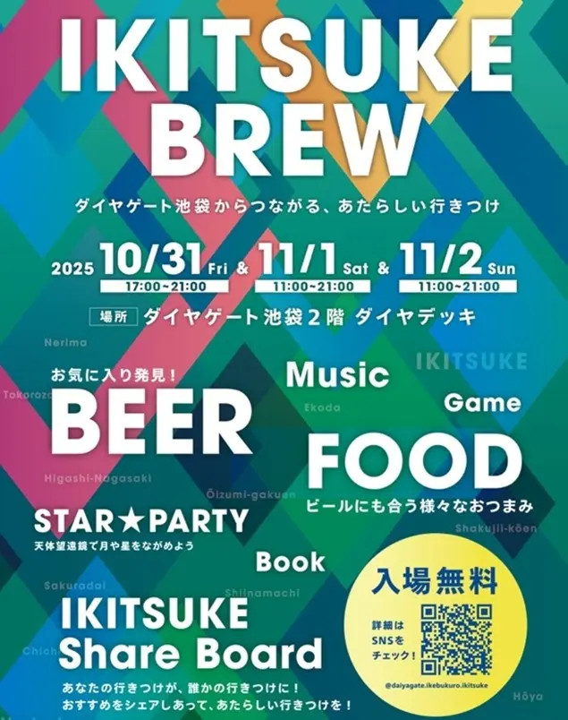 2025年10月31日(金)~11月2日(日)にダイヤゲート池袋で開催されるイベント「IKITSUKE BREW」にブース出店し、天体望遠鏡や双眼鏡など光学機器を展示します。さらに日中は太陽観望会、夜に星空観望会を実施、解説員による星空案内も行います。