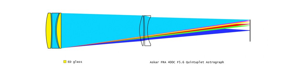 - 口径72mm、焦点距離400mm(口径比F5.6)という取り回しが良い鏡筒に、5群5枚のレンズを採用。2枚のEDレンズ(特殊低分散ガラス)をエアスペース配置した独自設計により、色収差・コマ収差・非点収差を高度に補正した、切れ味のある星像を実現します。