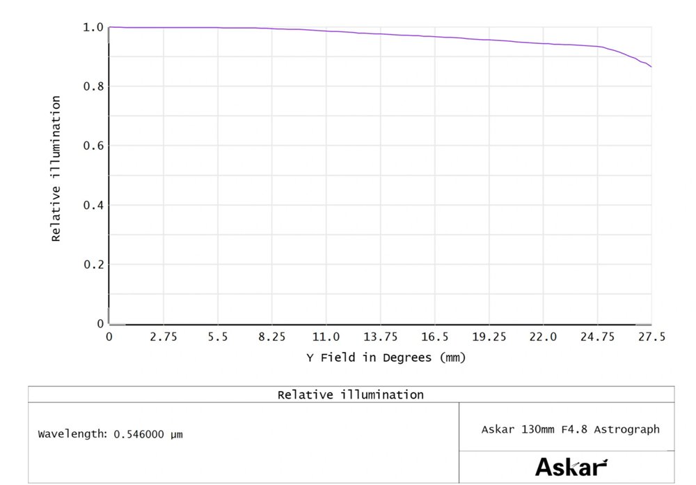 - 中心部のRMSスポット半径はわずか2μm以下、フルサイズの周辺部でも2.4μm以下という驚異的な星像を実現。周辺減光や星像の歪みを最小限に抑え、画像処理の負担を大幅に軽減します。